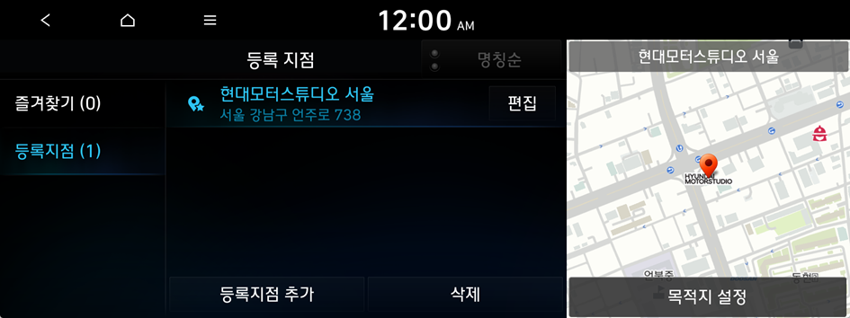 내비게이션에 등록해 둔 등록 지점을 목적지로 바로 설정할 수 있습니다.