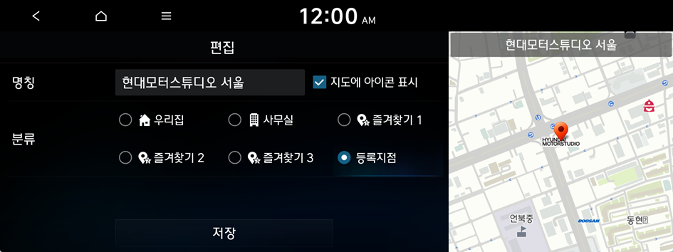 현재 위치나 자주 사용하는 장소를 미리 등록해 두었다가 간편하게 목적지로 설정할 수 있습니다.