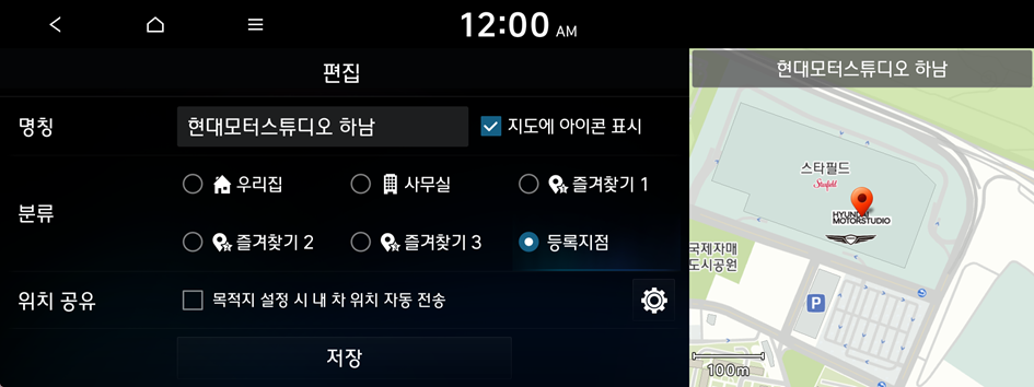 ▶ 위치 저장을 누르세요.