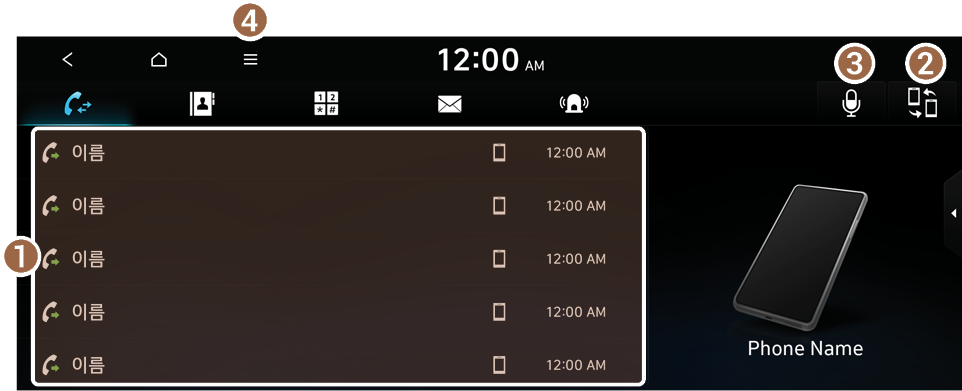 휴대 전화에 저장되어 있는 최근 통화 목록을 사용해 전화를 걸 수 있습니다.
