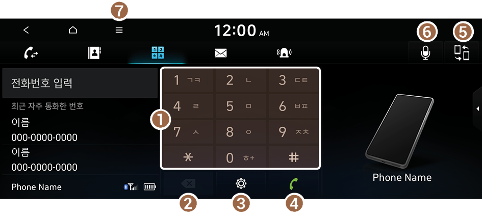 키패드로 전화번호를 입력해 전화를 걸 수 있습니다.