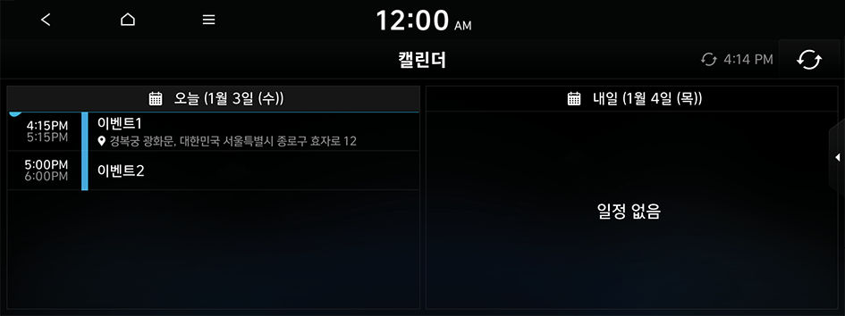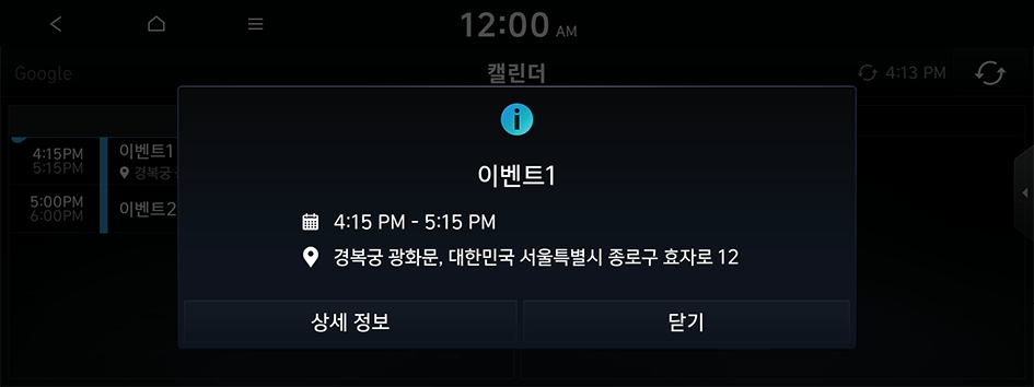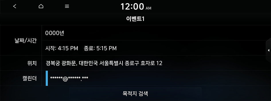 캘린더 화면에서 일정을 누르면 상세 정보를 확인하고 목적지를 설정할 수 있습니다.