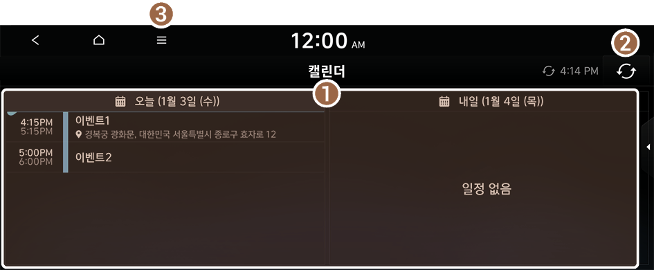 오늘과 내일의 일정 정보를 확인할 수 있습니다.