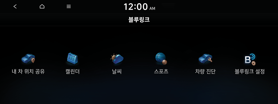 시스템의 블루링크 메뉴를 실행해 블루링크 서비스를 이용할 수 있습니다.