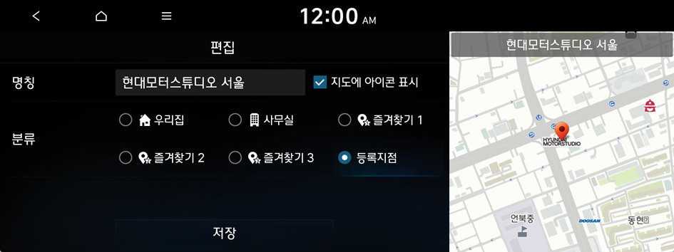 ▶ 삭제를 누르세요.등록 지점을 목적지로 설정할 경우, 저장된 연락처로 내 차 위치가 자동으로 전송되도록 설정할 수 있습니다.