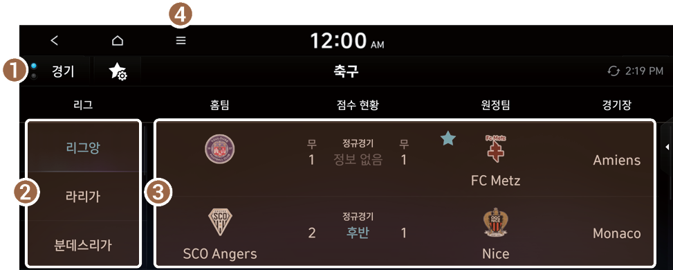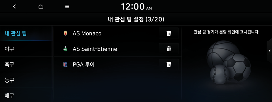 ▶ 내 관심 팀 설정을 누르세요.해당 팀의 경기 정보가 항상 스포츠 경기 목록 상단에 표시됩니다.