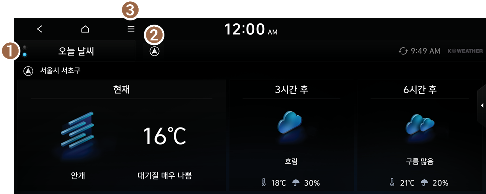 전체 메뉴 화면에서 블루링크 ▶ 날씨를 누르세요.