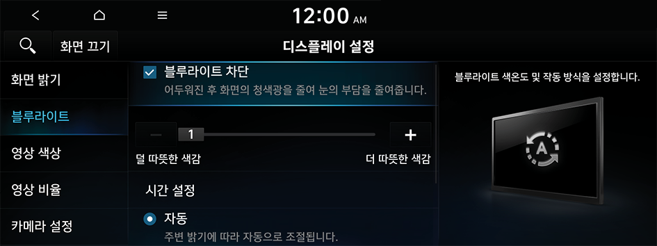 블루라이트 필터 사용 여부를 설정할 수 있습니다.