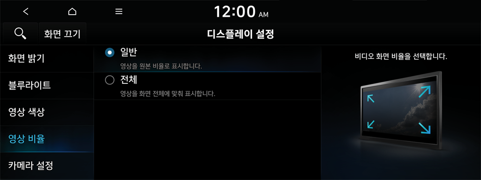 화면 밝기, 동영상 화면 비율 등 시스템 화면에 관련된 환경을 설정할 수 있습니다.