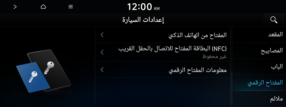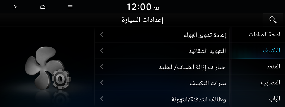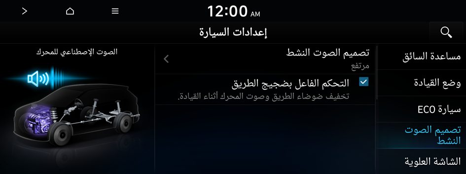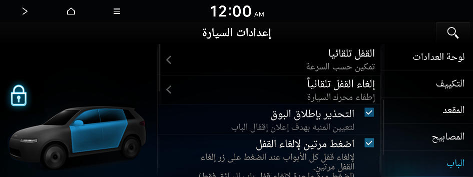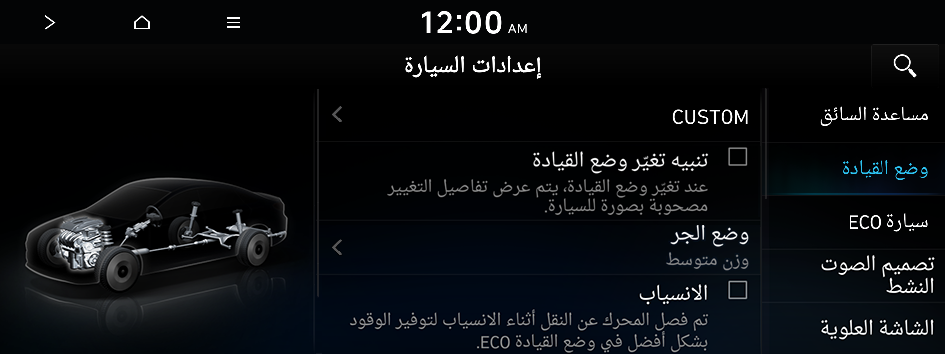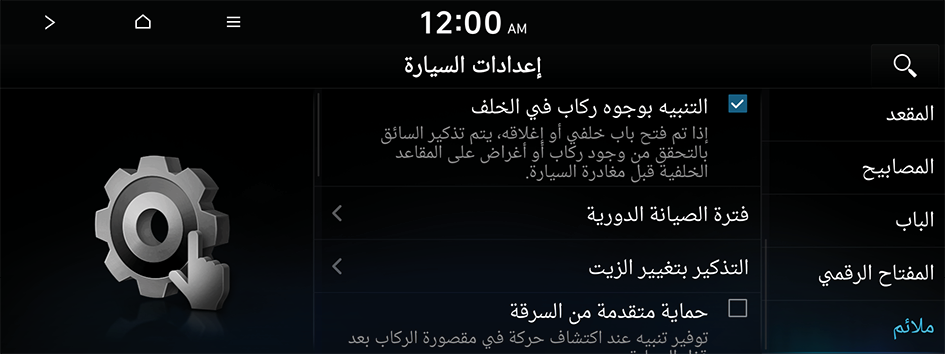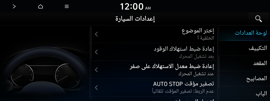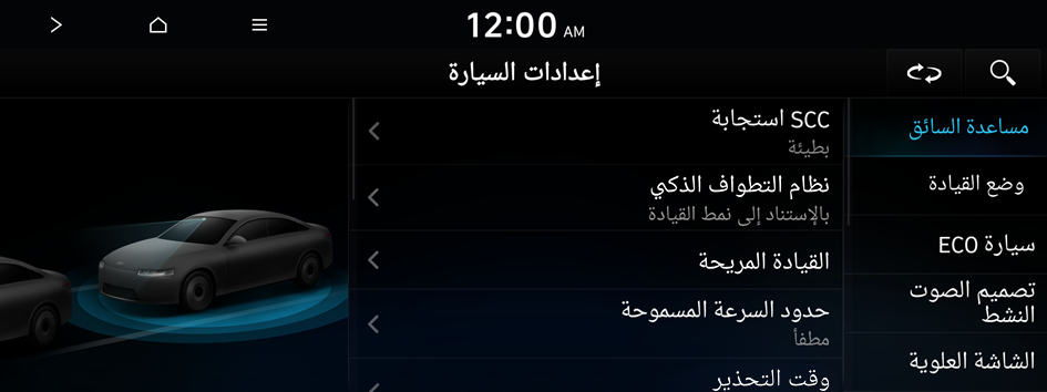 وقم بإدخال كلمة أساسية للبحث عن عنصر إعداد.يمكنك تمكين أنظمة متنوعة تساعد السائق وتضمن السلامة.