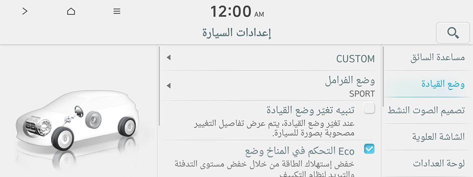 تكوين الإعداد حتى يُعرض إشعار تغيير وضع القيادة مع صورة السيارة عند تغيير وضع القيادة.