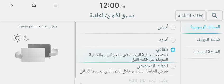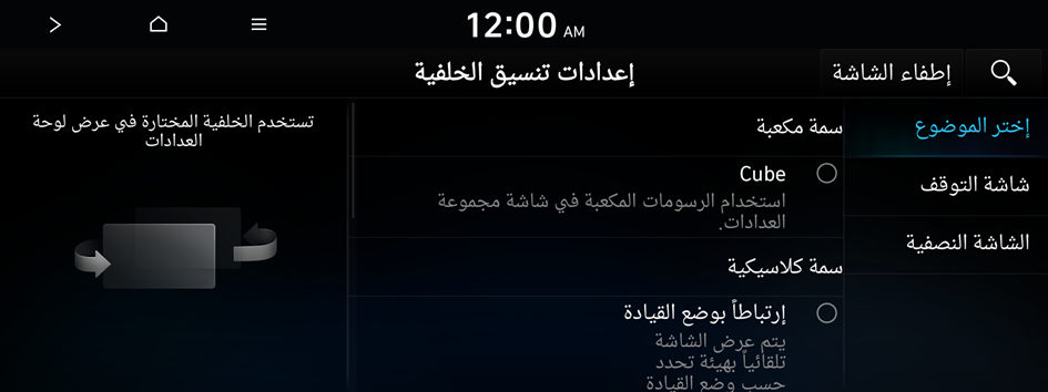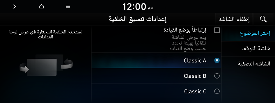 يتم عرض الشاشة تلقائياً بهيئة تحدد حسب وضع القيادة