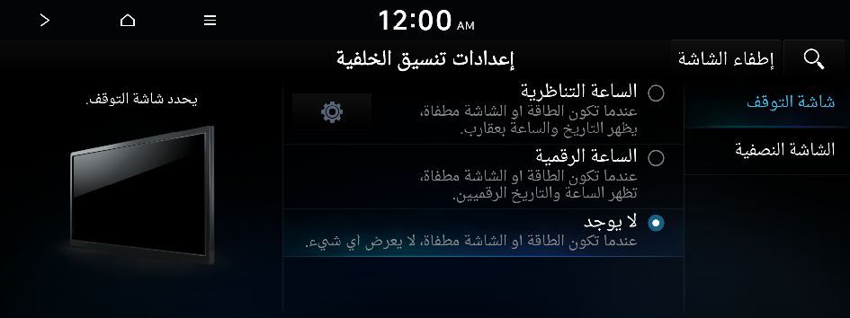 لاختيار الساعة التناظرية لعرضها على الشاشة.لعرض الساعة الرقمية على شاشة التوقف في النظام.