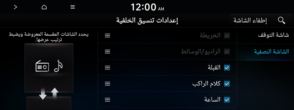 حدد شاشة القائمة لعرضها على الشاشة المقسَّمة عند استخدام النظام.