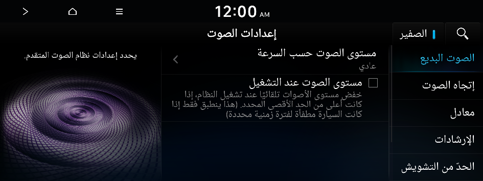 وقم بإدخال كلمة أساسية للبحث عن عنصر إعداد.يمكنك تغيير إعدادات النظام الصوتية وتطبيق تأثيرات صوتية مختلفة.