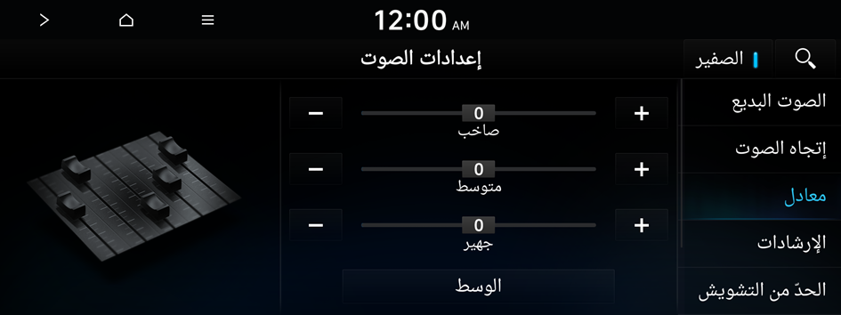 يمكنك ضبط الصوت من خلال ضبط (مستويات الإخراج) لكل موجة صوتية: جهير ومتوسط وصاخب.