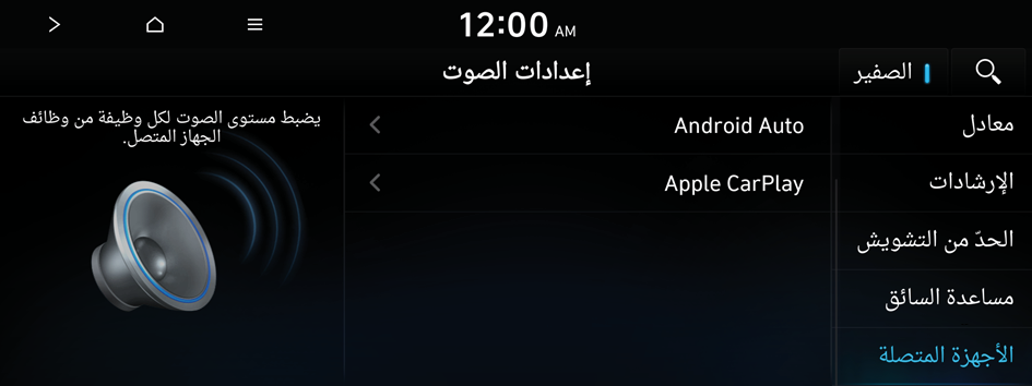 يمكنك إعداده لخفض مستوى الصوت تلقائيًا إلى مستوى مناسب عند تشغيل السيارة.