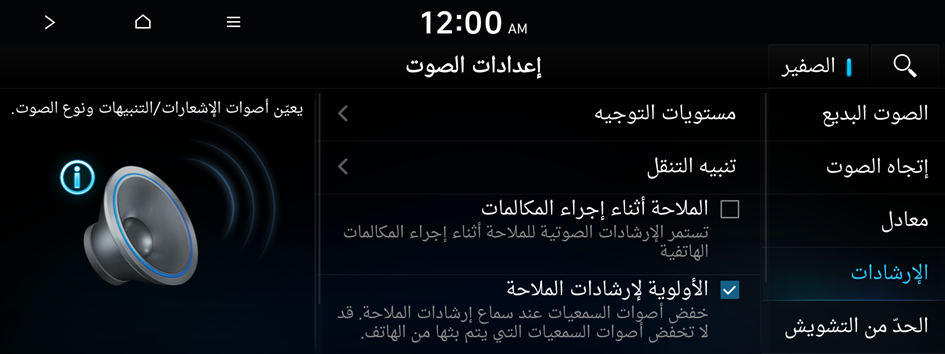 يمكنك التعيين لتمكين سماع صوت الملاحة أولاً عند استخدام كل من نظام الملاحة ونظام الراديو/الوسائط.