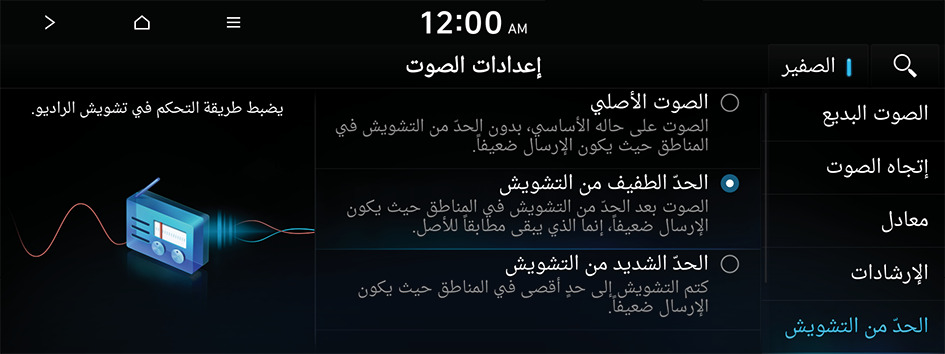 يمكنك تخصيص جودة الصوت عند الاستماع إلى راديو FM من خلال ضبط التشويش في الخلفية الخاص بالصوت الأصلي.