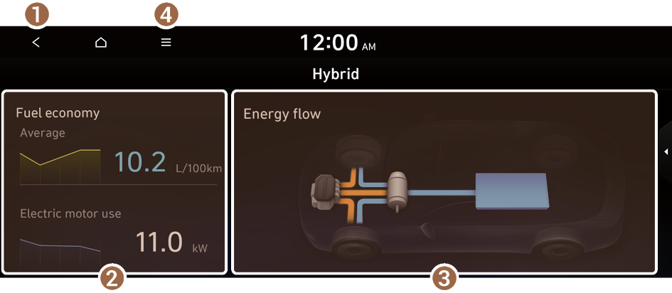 You can see the fuel economy and energy flows of the vehicle.