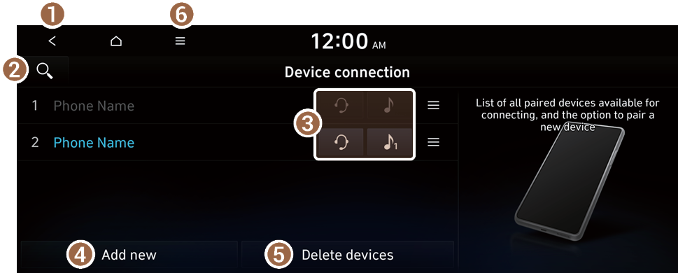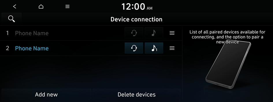 If you will no longer use a Bluetooth device or you want to add a new device when 6 devices are already registered, delete an existing registered device.
