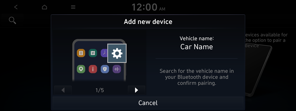 Park the vehicle at a safe place before connecting a Bluetooth device to the system. It may take the driver attention off the road and cause a traffic accident which can result in damages, injuries, and/or death.
