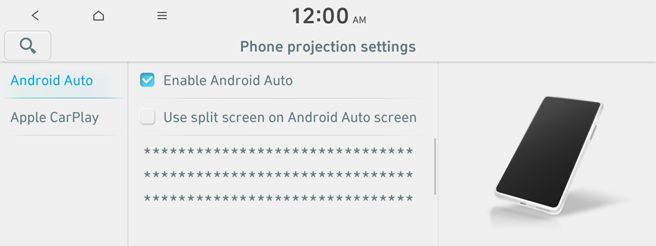 Using an approved USB cable provided by your smartphone manufacturer is recommended. Using unapproved USB cables may cause a phone projection error or a system malfunction.