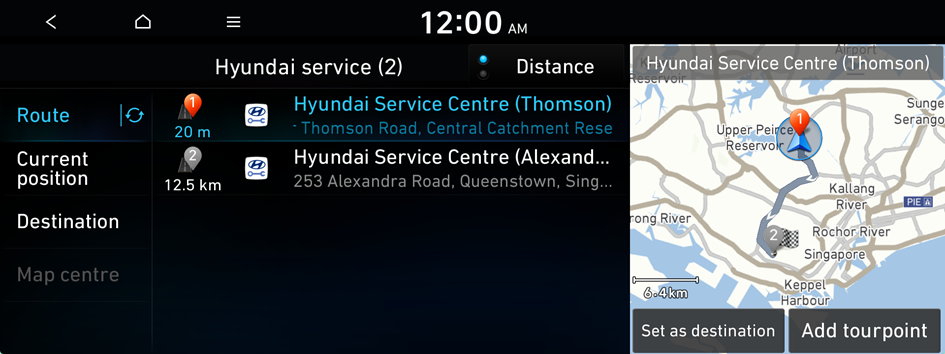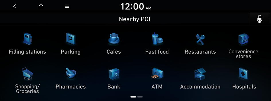 On the Navigation menu, you can set the destination by using various searches, such as entering the location data or selecting from recent destinations or categorised places.