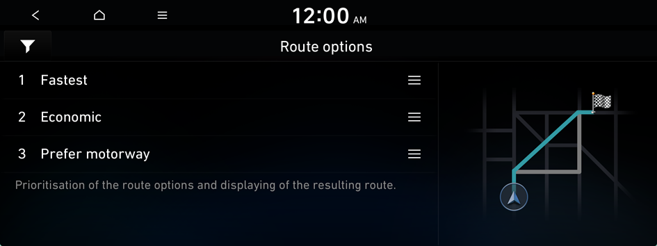 on the right of the preferred search option to the desired position to change the priority. To select the avoidance route option, press