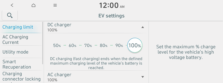 and enter a keyword to search for a setting item. You can also search for a setting item by voice.You can set the battery amount to charge.