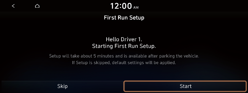 - To proceed with First Run Setup without changing the driver's name, press Next.