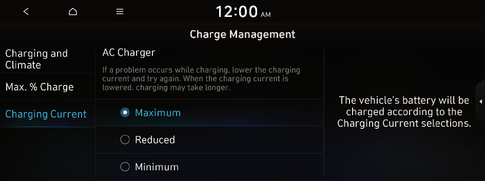 Select the charging current to be used for AC Charging.