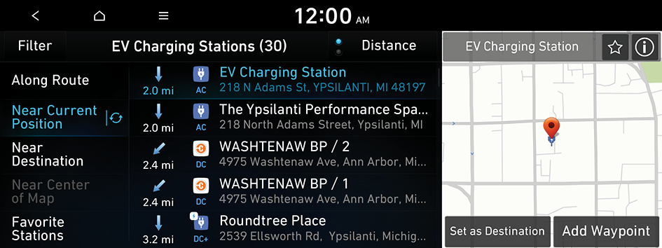 (2D North Up): Displays the map with the north fixed at the top.When you want to drive beyond the drivable range, you can search for charging stations within the range and start route guidance to a selected charging station.