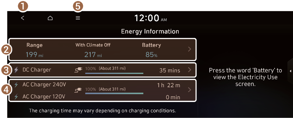 On the Electric Vehicle screen, press Energy Information.