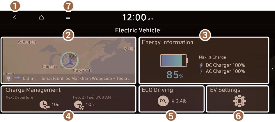 The Electric Vehicle screen provides the following features and information: