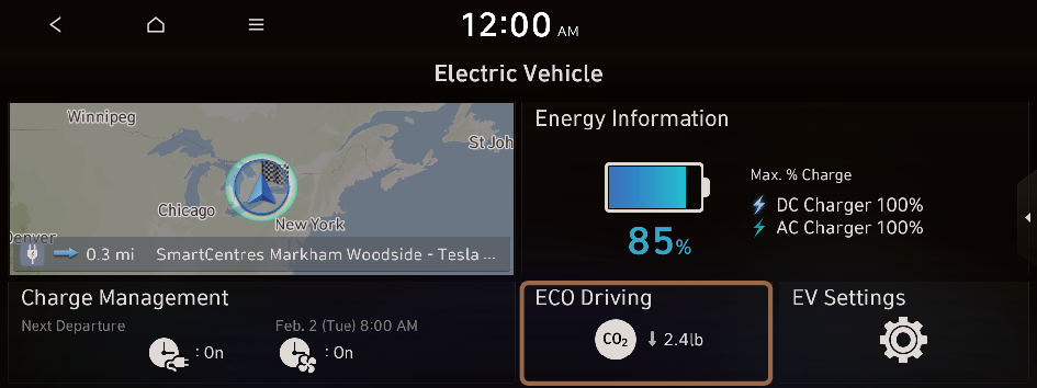 You can use various features for electric vehicles, such as seeing the driving or energy information, scheduling a charging, or searching for charging stations.