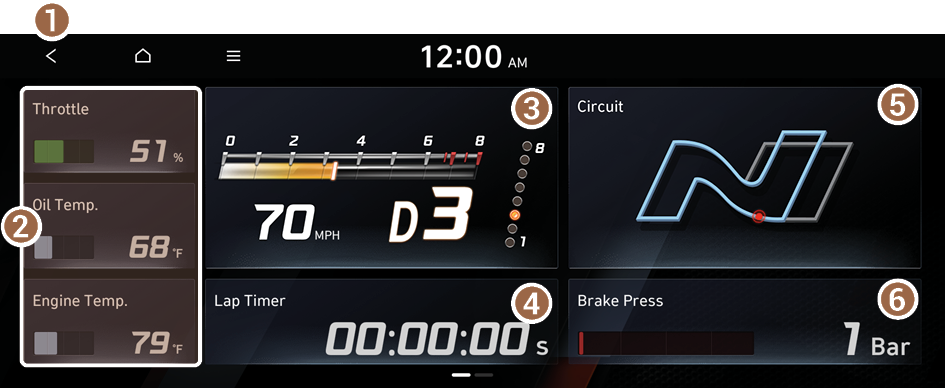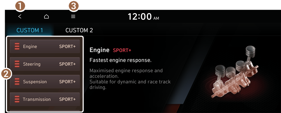 Set the vehicle system for high-performance driving. You can configure drive mode and performance options for optimal driving and view real-time information.