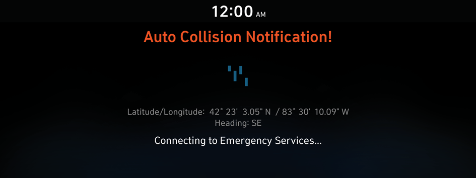 This service provides you with immediate assistance when an accident occurs and an airbag is deployed. When this happens, an Auto Collision Notification (ACN) signal, containing your customer and location information, will be transmitted to the Bluelink center automatically.