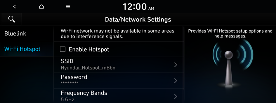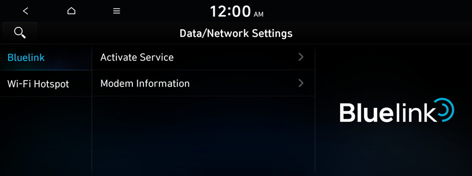 You can change the data network settings, including Bluelink and Wi-Fi Hotspot.