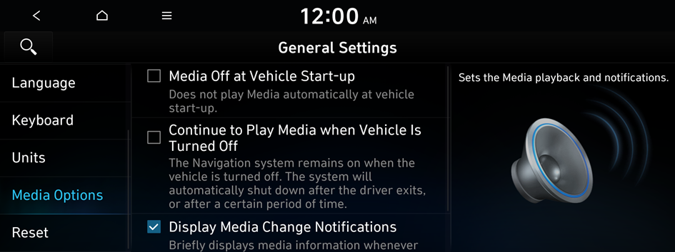You can set the media player not to start automatically when starting the engine or set it to notify you of any information changes during media playback.