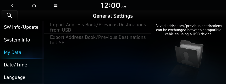 You can import registered location and destination information, saved on your USB storage device, to the system.