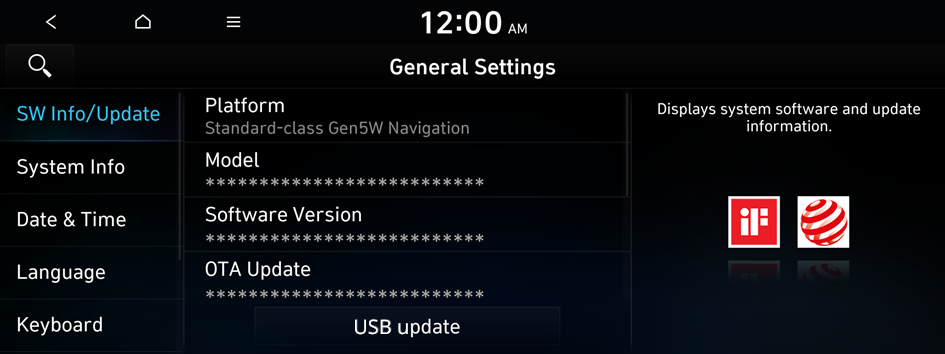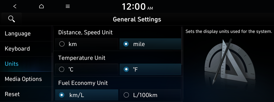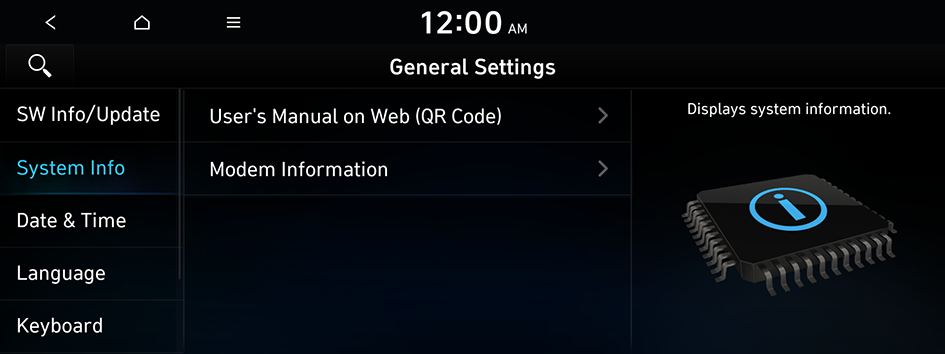 You can configure general settings for date, time, language, and the like. You can also check information of the system.