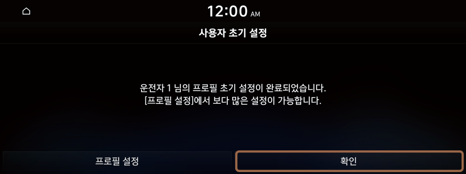 - 사용자 초기 설정 완료 화면이 나타나면 확인을 누르세요.