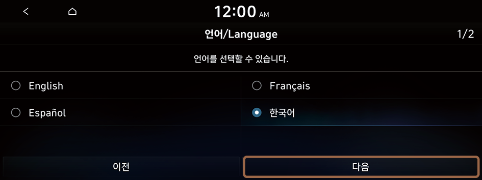 - 시스템 화면에 표시할 언어를 설정한 후 다음을 누르세요.