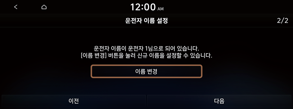 - 운전자 이름을 설정하려면 이름 변경을 누르세요.
