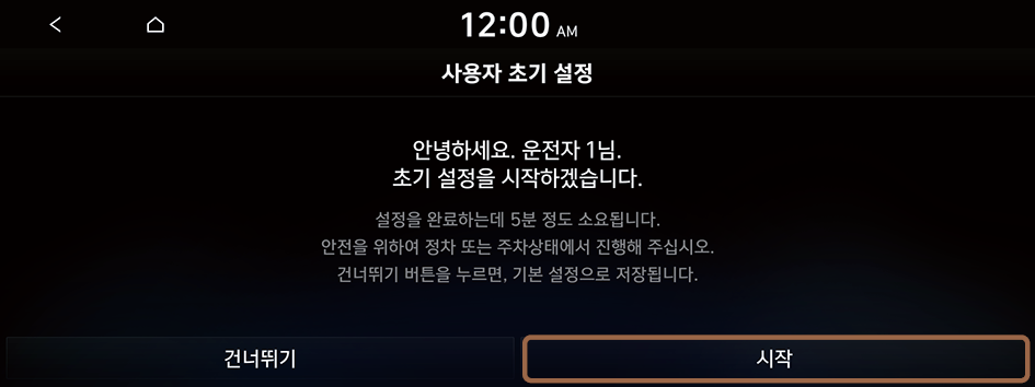 - 운전자 이름을 변경하지 않고 초기 설정을 진행하려면 다음을 누르세요.