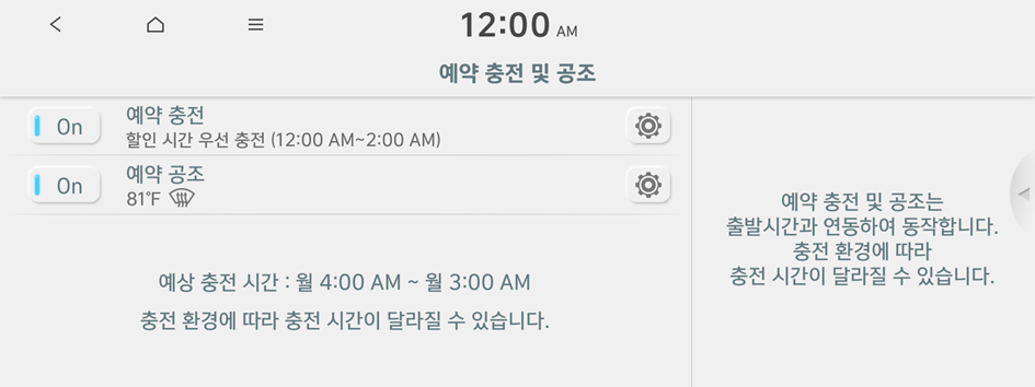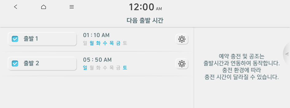예약 공조를 다음 출발시간과 연동하여 설정할 수 있습니다.