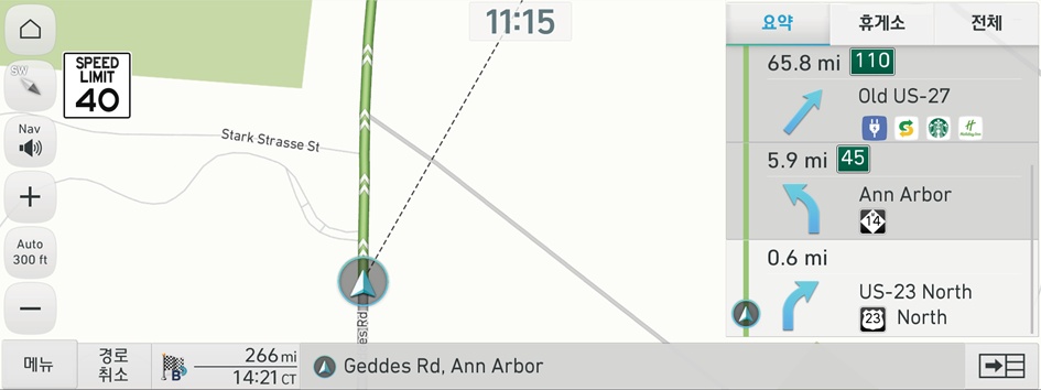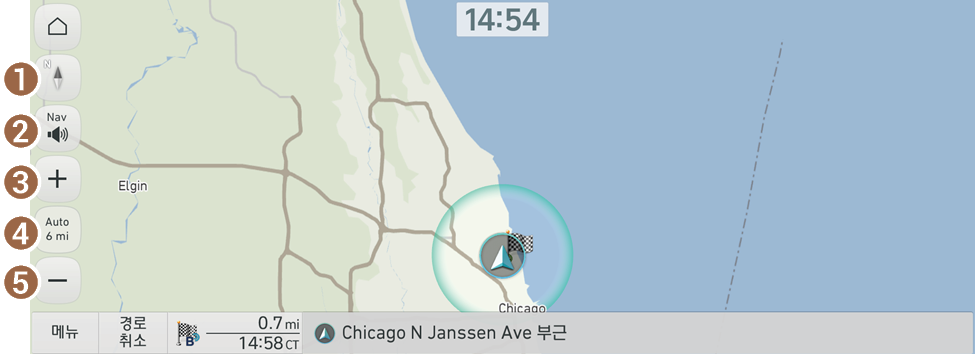 (주행 방향 2D): 주행 방향에 따라 지도 화면을 회전해서 볼 수 있습니다.