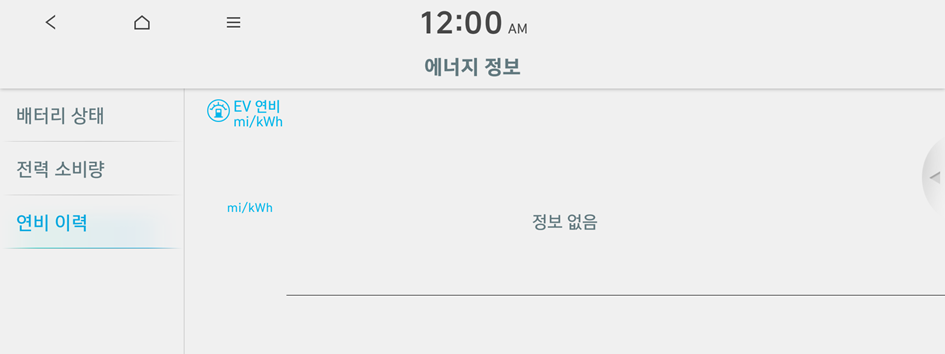 에너지 정보 화면에서 연비 이력을 누르세요.