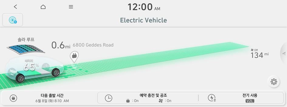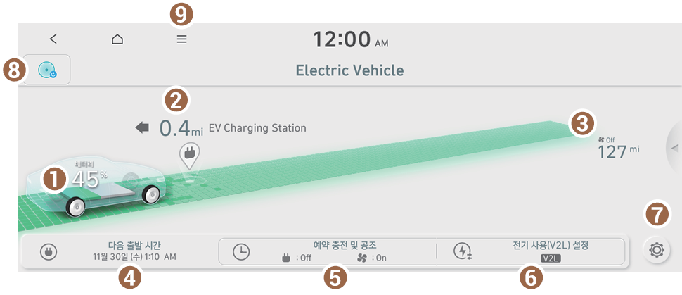 Electric Vehicle 화면에서 사용할 수 있는 기능과 표시되는 정보는 다음과 같습니다.